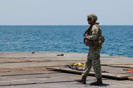 US PIER OFF GAZA COAST (Reuters) – Baking under the summer sun, U.S. troops find shelter in containers stationed on what is known as the “parking lot” of a floating pier in the Mediterranean Sea that aims to boost the delivery of humanitarian aid to the Gaza Strip.