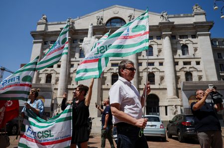 MILAN (Reuters) -Workers waving flags demonstrated outside the Milan Stock Exchange on Thursday as they staged a historic strike to protest against the way it is being run by owner Euronext.