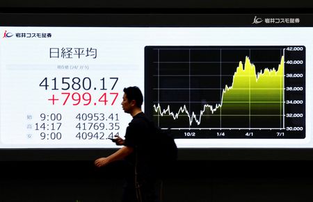 NEW YORK/LONDON (Reuters) -A global equities gauge rose to record levels on Wednesday while U.S. Treasury yields edged down with comments from Federal Reserve Chair Jerome Powell fuelling hopes for interest rate cuts as investors awaited key U.S.