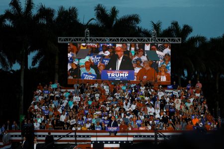 (Reuters) -Republican presidential candidate Donald Trump ratcheted up his attacks on Vice President Kamala Harris at a rally near Miami on Tuesday, trying to discredit her as the Democratic Party tussles over whether President Joe Biden should remain in the race.