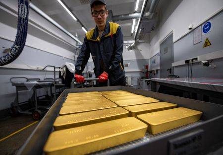 (Reuters) – Gold prices jumped more than 1% on Thursday to break above the $2,400 per ounce level after data showed U.S. consumer prices unexpectedly slipped last month, boosting bets for interest rate cuts by the Federal Reserve.