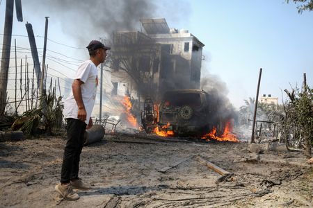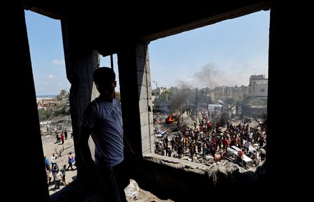 CAIRO/GAZA/JERUSALEM (Reuters) -An Israeli airstrike killed at least 90 Palestinians in a designated humanitarian zone in Gaza on Saturday, the enclave’s health ministry said, in an attack that Israel said targeted Hamas military chief Mohammed Deif.