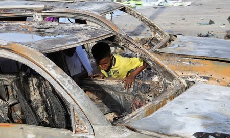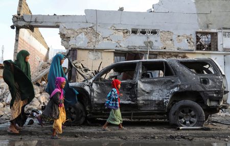 MOGADISHU (Reuters) – A car bomb exploded outside a restaurant in Somalia’s capital Mogadishu on Sunday night, killing five and injuring 20 as patrons were watching the final of the Euro 2024 football tournament on TV, police said, blaming Islamist insurgents.