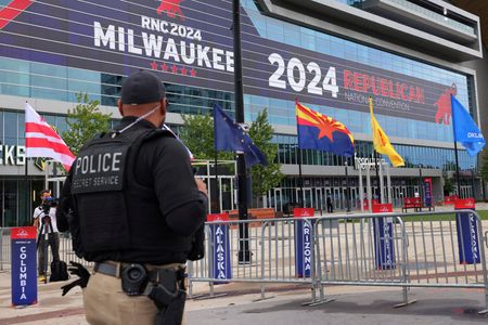 MILWAUKEE/WASHINGTON (Reuters) – U.S. federal officials charged with security at the Republican Party’s convention, set to kick off in Milwaukee this week, are not planning to make any changes to their security protocols despite an assassination attempt against presumptive nominee Donald Trump on Saturday that sparked fears of further political violence.