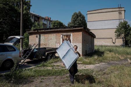 MYKOLAIVKA, Ukraine (Reuters) – Pensioner Tetiana Beibyko tapped approvingly at the polyethylene window installed in her home in eastern Ukraine after shelling shattered the glass windows of her five-storey block.