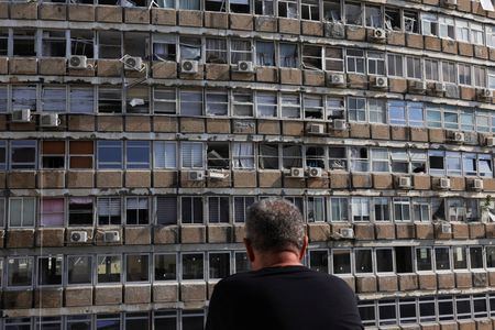 TEL AVIV (Reuters) – A long-range Iranian-made drone hit the centre of Tel Aviv in the early hours of Friday, in an attack claimed by the Yemen-based Houthi militia that killed one man and slightly wounded four others, the Israeli military and emergency services said.