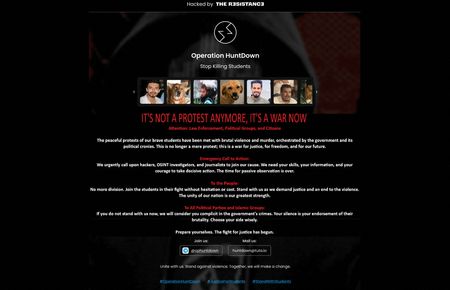 “Operation HuntDown, Stop Killing Students,” read identical messages splashed on the sites, adding in crimson letters: “It’s not a protest anymore, it’s a war now.”