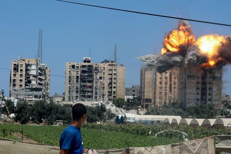 CAIRO (Reuters) -Israeli forces pounded several areas across the Gaza Strip on Saturday, killing at least 39 Palestinians, according to health officials, as tanks advanced deeper into western and northern Rafah.