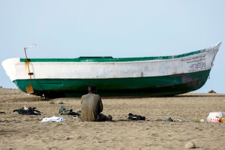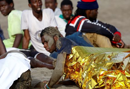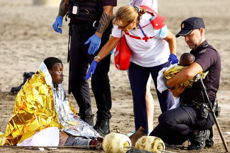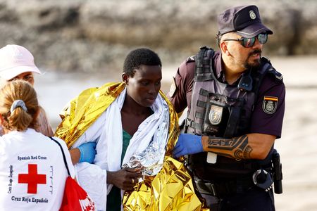 SAN BARTOLOME DE TIRAJANA, Spain (Reuters) – Dozens of exhausted migrants arrived in a wooden boat on a beach in Spain’s Canary Islands early on Friday amid a sharp rise in perilous crossings from Africa, with emergency personnel and a few stunned beachgoers rushing to help.