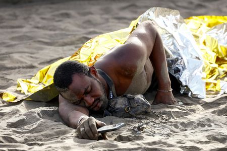 After reaching the beach lined with hotels, many of the migrants lay on the sand, looking frail and exhausted.