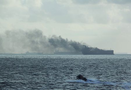 KUALA LUMPUR (Reuters) – Malaysia’s coast guard said on Sunday it had located and intercepted a large oil tanker that was involved in a fiery collision with another vessel two days ago off Singapore.