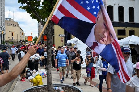 GRAND RAPIDS, Mich. (Reuters) -Donald Trump held his first campaign rally on Saturday since he narrowly escaped an assassination attempt one week ago, mocking Democrats and comparing former Democratic House Speaker Nancy Pelosi to a “dog.”