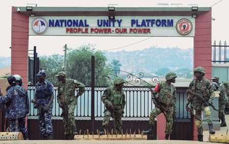 KAMPALA (Reuters) -Soldiers and police sealed off the headquarters of Uganda’s biggest opposition party on Monday in what a police spokesperson called a precautionary move ahead of anti-government protests planned for Tuesday despite a ban.
