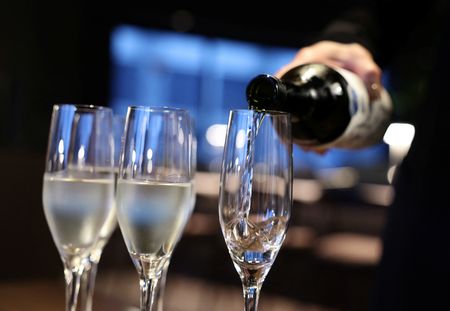 TOKYO (Reuters) – The gentle lilt of a flute fills a cramped second-storey space in Tokyo that houses a burbling vat of fermenting sake.
