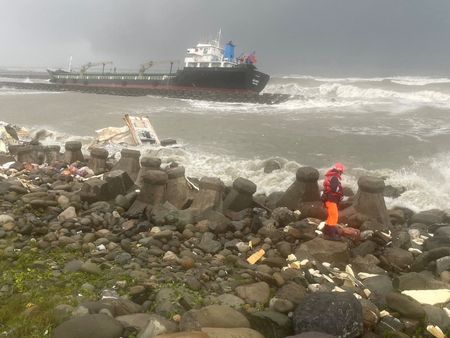 TAIPEI (Reuters) -Taiwan’s coast guard tried on Friday to rescue dozens of sailors stranded off the southern coast after Typhoon Gaemi sank a freighter and grounded eight others in the Taiwan Strait.