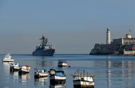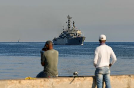 HAVANA (Reuters) -Havana residents watched from shore on Saturday as Russian warships arrived for the second time in as many months, in a visit that Cuba called routine.