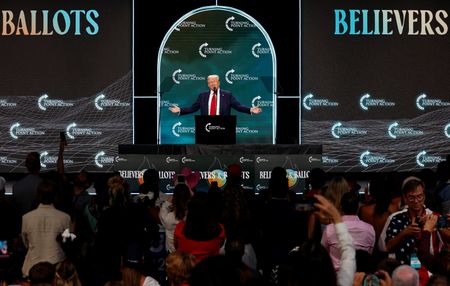 WASHINGTON (Reuters) -Republican presidential candidate Donald Trump told Christians on Friday that if they vote for him this November, “in four years, you don’t have to vote again.