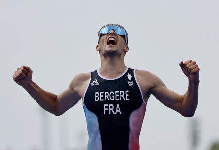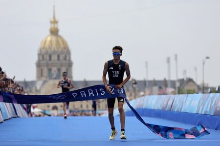 PARIS (Reuters) -Britain’s Alex Yee ran a perfectly-paced 10km to snatch a dramatic Olympic triathlon gold on Wednesday, overhauling a fading Hayden Wilde of New Zealand in brutal conditions.