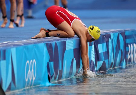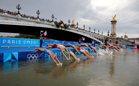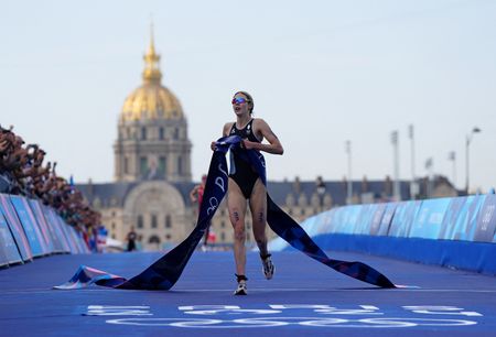PARIS (Reuters) -France’s Cassandre Beaugrand won gold in the women’s triathlon at the Paris Olympics on Wednesday, cheered on by a delighted crowd as the hosts’ gamble to hold the swim stage of the race in the Seine paid off after days of uncertainty.