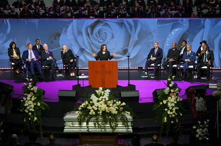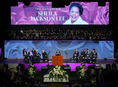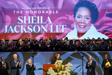 (Reuters) -Vice President Kamala Harris on Thursday lauded U.S. Representative Sheila Jackson Lee as a “fierce champion of justice” at the funeral of the prominent voice on African American and women’s rights within the Democratic Party.