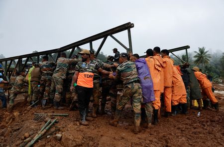 MUNDAKKAI, India (Reuters) – Four people were rescued from a house in India’s Kerala state on Friday, three days after devastating landslides, as search operations accelerated with the construction of a key bridge that helped transport heavy equipment to the affected area.