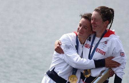 PARIS (Reuters) – The agony of missing out on a podium place in Tokyo by one-hundredth of a second was finally washed away for the British lightweight sculls pair of Imogen Grant and Emily Craig on Friday as they won the gold medal in dominant fashion.