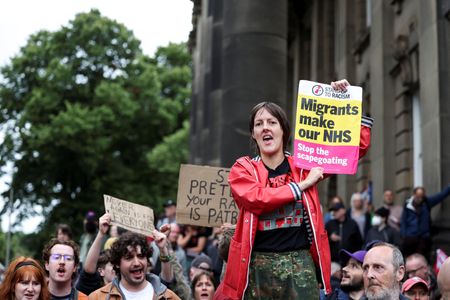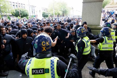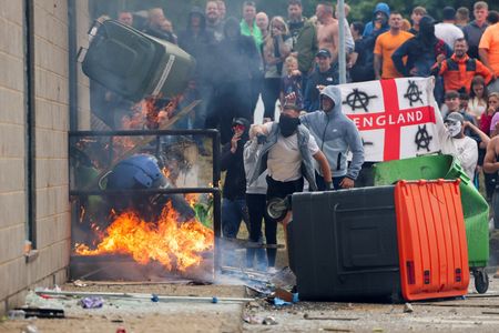 LONDON (Reuters) -British Prime Minister Keir Starmer on Sunday condemned what he described as “far-right thuggery” and said perpetrators would face the full force of the law after days of violent anti-immigration protests culminated in hotels being targeted.