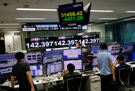 NEW YORK (Reuters) -A surge in the yen to a seven-month high led a broad dollar fall, as a slew of economic data last week raised the prospect of a U.S. economic downturn and bigger interest rate cuts from the Federal Reserve.