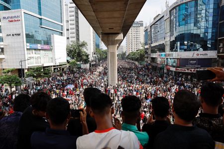 NEW DELHI (Reuters) – Bangladesh Prime Minister Sheikh Hasina’s resignation after weeks of violent protests, announced on Monday in a televised address by the army chief, has brought focus once more to the country’s history of political upheaval and coups.