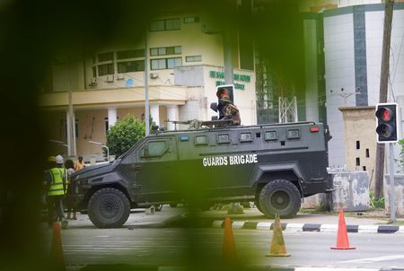 ABUJA (Reuters) – Nigeria has detained some tailors for making Russian flags that were waved during anti-government protests this week in northern states, the state secret police said, in a move that underscores concerns about increased Russian activity in western Africa.