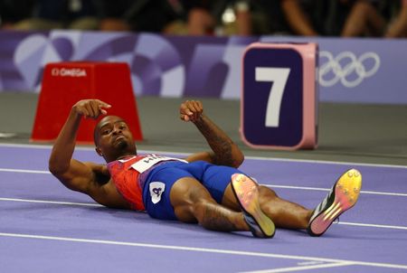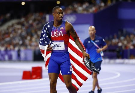 PARIS (Reuters) -Quincy Hall produced an incredible late surge to overhaul Briton Matthew Hudson-Smith and take a first Olympic 400 metres gold for the United States since 2008 in another scintillating and dramatic race on Wednesday.