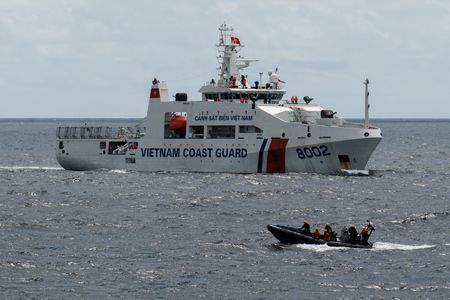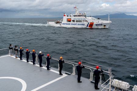 MANILA (Reuters) – Crew of Philippine and Vietnamese vessels blasted a boat with water cannon and simulated a search and rescue on Friday, in the first such joint exercises between coast guards of two countries that have faced off with Beijing in the South China Sea.