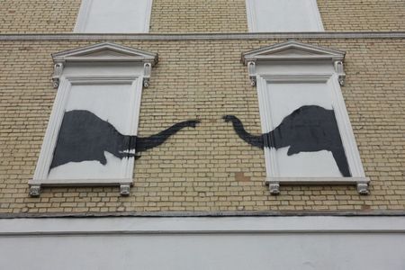 Next came two elephant heads, peering out of two blocked out windows on the side of a house in affluent Chelsea, followed by three monkeys which appear to be hanging from a railway bridge near east London’s Brick Lane.