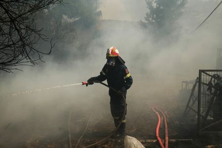 ATHENS (Reuters) -Greece’s worst wildfire this year spread into the Athens suburbs on Monday, forcing hundreds of people to flee as it torched trees, homes and cars and choked busy roads with smoke and ash.