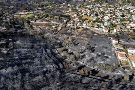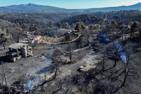 ATHENS (Reuters) – Firefighters battled on Wednesday to extinguish the remnants of a wildfire near Athens that killed a woman, torched buildings, devoured woodland and forced thousands of people to flee their homes.