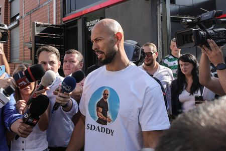 BUCHAREST (Reuters) -Internet personality Andrew Tate’s home near Bucharest was raided by law enforcement on Wednesday, a Reuters witness said, as Romanian police launched four searches in an investigation into crimes including human trafficking and sex with a minor.