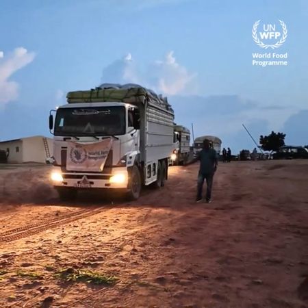 In a statement on Wednesday, the World Food Programme said that sorghum, pulses, oil and rice enough for 13,000 people had crossed on Tuesday evening, heading for Kreinik, West Darfur, one of 14 spots across the country experts say is at risk of famine.