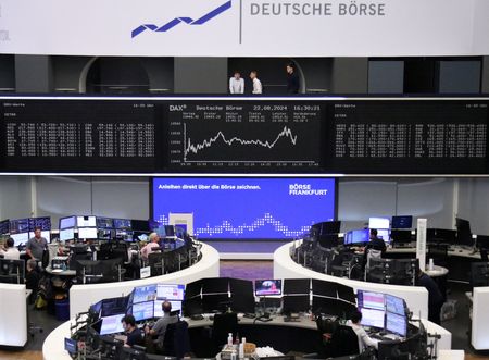 (Reuters) -European shares were largely flat on Friday, navigating through mildly turbulent trading, as investors were cautious ahead of Federal Reserve Chair Jerome Powell’s eagerly-awaited speech later in the day.