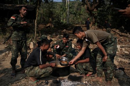 (Reuters) – A dense bamboo forest in rebel-held territory surrounds the training ground in eastern Myanmar where more than 100 young people, mostly in their twenties, are undergoing rigorous military drills.