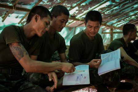 The following morning, Maung Saungkha gathers his officers to reinforce emergency procedures in case of a fighter jet attack.