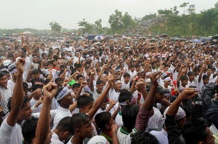 DHAKA (Reuters) – Tens of thousands of Rohingya refugees rallied in camps in Bangladesh on Sunday on the seventh anniversary of the military crackdown that forced them to flee, demanding an end to violence and safe return to Myanmar.