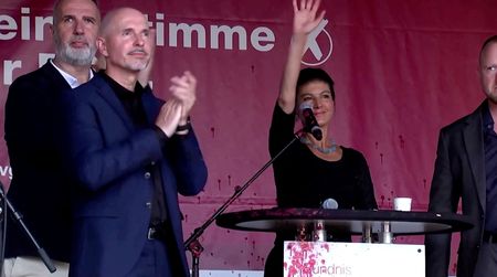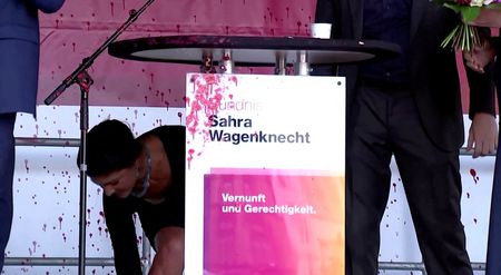 ERFURT (Reuters) – The leader of Germany’s Sahra Wagenknecht Alliance (BSW) was attacked with pink paint on Thursday at a campaign rally in the eastern German state of Thuringia, where her party is expected to come third in state parliamentary elections this Sunday.