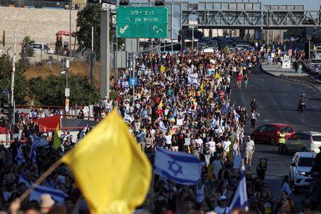 JERUSALEM (Reuters) -The head of Israel’s biggest labour union called for a general strike on Monday to pressure Prime Minister Benjamin Netanyahu’s government to bring back Israeli hostages still held by Hamas in Gaza, as thousands of protesters took to the streets.