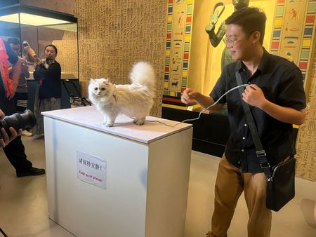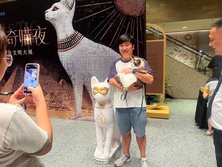SHANGHAI – Shanghai Museum has pulled in crowds this summer for an exhibition of ancient Egyptian relics including cat statues and other feline imagery, and which on Saturday nights allows up to 200 visitors to bring along their own four-legged friends.