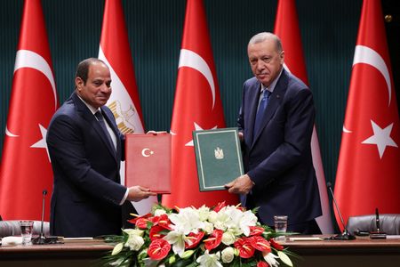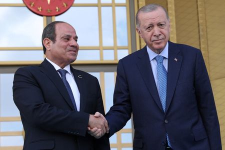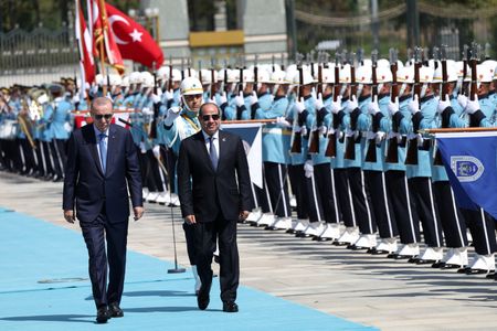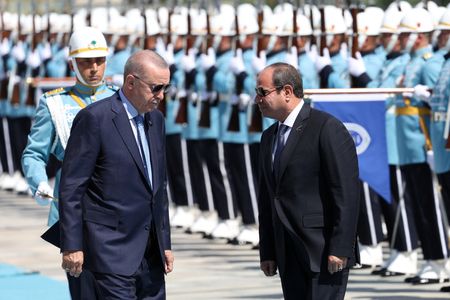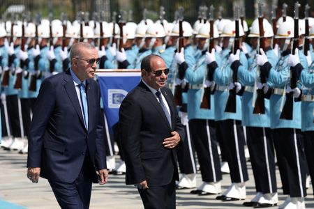 ANKARA (Reuters) -Turkish President Tayyip Erdogan and Egyptian counterpart Abdel Fattah al-Sisi discussed the Gaza war and ways to further repair the long-frozen ties between the regional powers during talks in Ankara, in the first such presidential visit in 12 years.