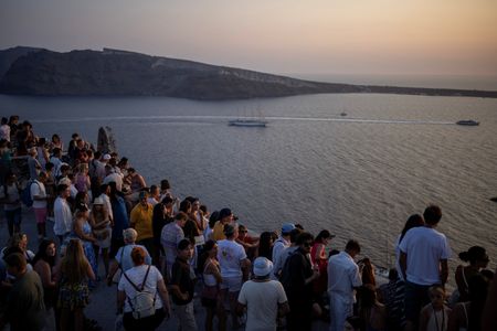 ATHENS (Reuters) – Greece plans to impose a 20-euro levy on cruise ship visitors to the islands of Santorini and Mykonos during the peak summer season, in a bid to avert overtourism, Prime Minister Kyriakos Mitsotakis said on Sunday.