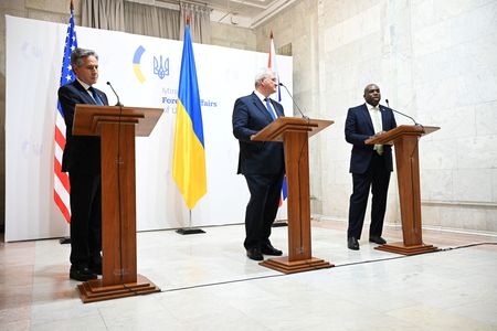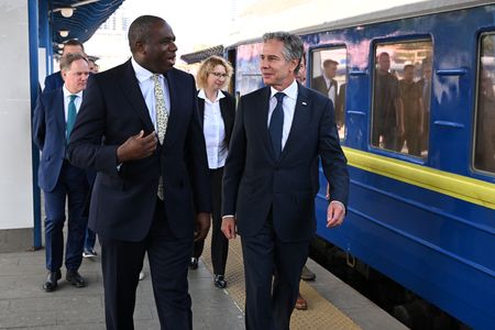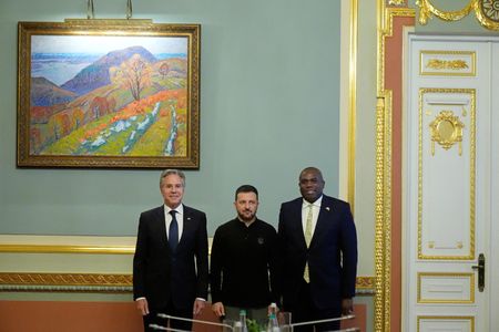 KYIV (Reuters) -The U.S. and British foreign ministers met President Volodymyr Zelenskiy on Wednesday on a visit interrupted by air raid warnings, unveiling new support but no breakthrough on the long-range strikes into Russia that are desperately wanted by Ukraine.