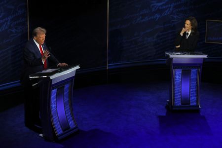 (Reuters) – As their high-stakes debate in Philadelphia commenced on Tuesday night, Vice President Kamala Harris walked across the stage, maneuvered around a lectern and stuck out her hand in greeting.