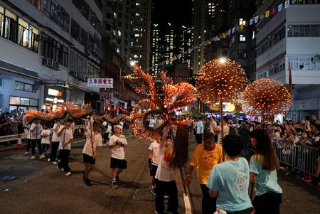 HONG KONG (Reuters) – Young people took to the streets of Hong Kong on Monday for the emblematic Tai Hang Fire Dragon Dance hoping to bring a new generation to the 145-year-old tradition.