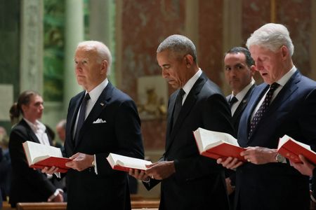 WASHINGTON (Reuters) -U.S. President Joe Biden joined former Democratic presidents and others to honor longtime human rights advocate and storied political family matriarch Ethel Kennedy at a memorial service in Washington on Wednesday after her death last week at age 96.
